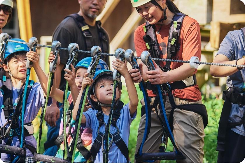 国際的な業界基準(ACCT)に沿って、設計・施工・運営を行い、30年にわたりアドベンチャー教育と施設づくりの両面で実践を重ねてきました。